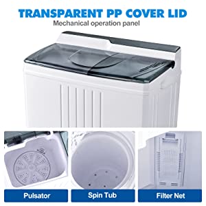 Portable Washing Machine Twin Tub Spin Dryer And Washing Machine Combo Compact For Camping Dorms Apartments College Rooms 7.5 KG Total Capacity 4.5 KG Washer 3 KG Drying Grey&White