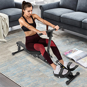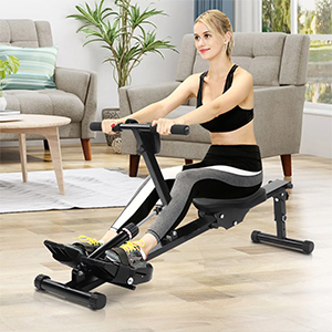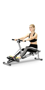 | Made from metal frame for added strength and stability, maximum load bearing is 120KGS; This rowing machine can give you a total workout targeting arms, shoulders, back, abs, hips and thighs, is a great equipment to any home gym | This fitness rower machine is not only carefully designed, but also the ergonomic body makes it smooth and delicate, with high resilience foam pad; non-slip texture, large base and heavy frame easy to adjust | Built-in digital monitor, you can track your exercise progress, including time, count, total, calories and scanning functions; you can fix the adjustable pedal strap to your foot and use it as needed Stabilizer adjustment rowing boat | Using a magnetic exercise rower is a good way to improve overall health, with small impact and easy joints, suitable for all ages and fitness levels; through the adjustable resistance mechanism, users can achieve ideal training according to their physical conditions effect |