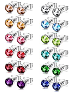 Sailimue 12 Pairs Stainless Steel Stud Earrings for Men Women CZ Earrings Set,4-6mm