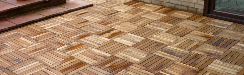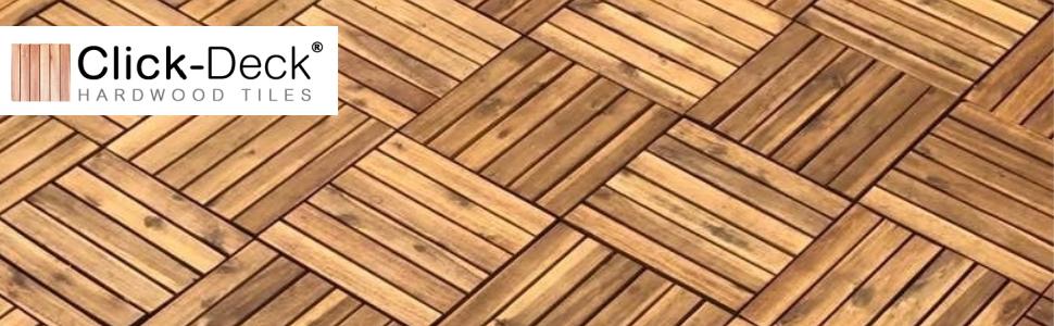 The Famous Click-Deck Hardwood Decking Tiles – Patio, Balcony, Roof Terrace, Hot Tub Deck Tiles Flooring Decking Cheap Prices for Large Quantities (18 x Hardwood Tiles)