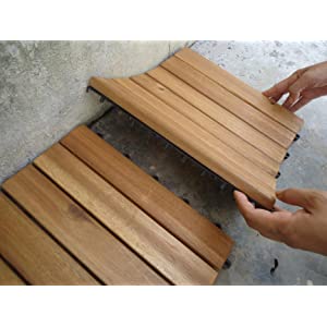 Installate in una zona di circa 9 mq, per differenziare la “zona pranzo” dal resto del terrazzo. Installazione molto facile, necessario un seghetto alternativo per fare i tagli laddove servono. Le mattonelle di legno non sono avvitate al supporto plastico, sono accoppiate a pressione mediante appositi fermi in plastica che penetrano in appositi buchi nel legno stesso. Forse anche meglio, cos non arrugginisce nulla. I listelli di finitura sono invece avvitati al supporto in plastica e possono essere trasformati da femmina in maschio semplicemente svitando il supporto plastico e invertirlo. Dopo il montaggio ho passato un apposito olio per pavimenti decking (il legno trattato ad olio, quindi non utilizzate vernici). Nel complesso, qualit migliore rispetto a quello similare di Ikea.