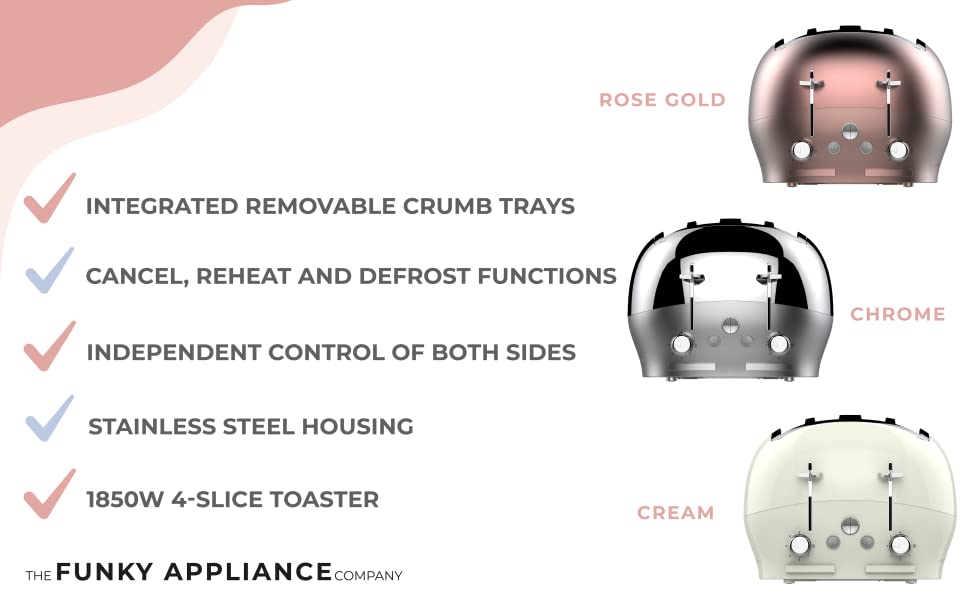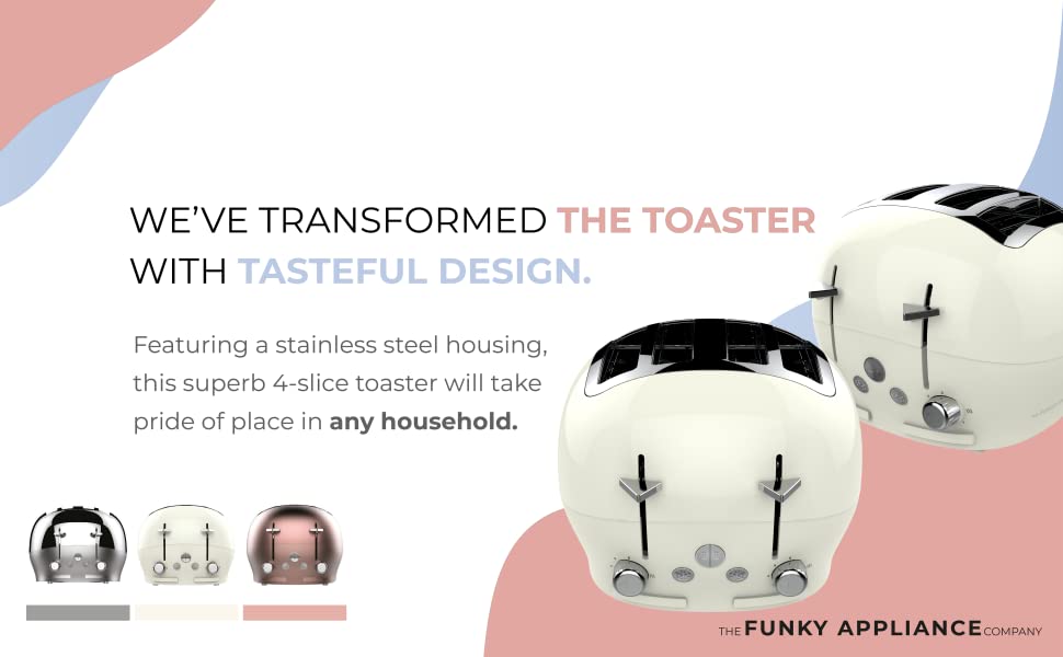 The Funky Appliance Company, 4 Slice Cream Funky Toaster, 1850 W