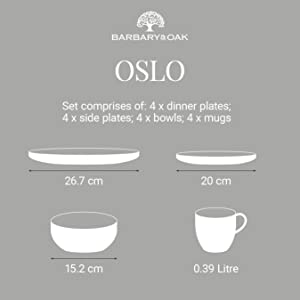 Tower BO867004GRY Barbary & Oak Oslo 16 Piece Dinnerware Set, Stoneware, White and Nimbus Grey