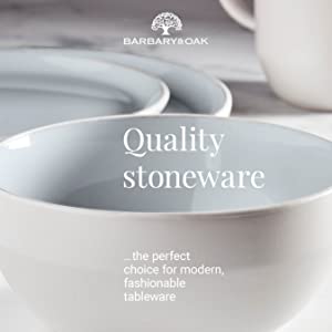 Really pleased with this simple, stylish dinnerware set. The shape of each piece is lovely, with nice wide plates with a raised rim and the bowls are great for soup and cereal.