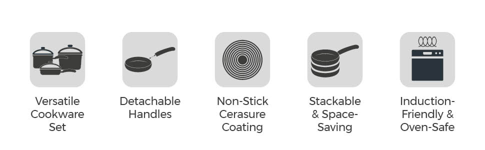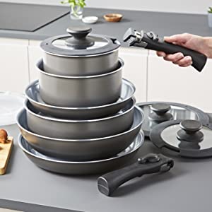 Tower Freedom T800200 13 Piece Cookware Set with Ceramic Coating, Stackable Design and Detachable Handles, Graphite, Aluminium