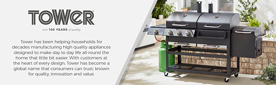 The Tower Ignite Multi XL combines gas, a multi-height charcoal grill, smoker barbecue and a side burner for grilling a wide range of meats in different and delicious ways. The 3 burner grill provides a big surface area for cooking larger portions of food for friends and family.