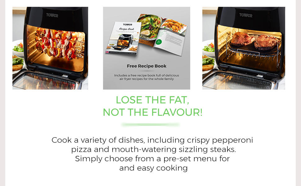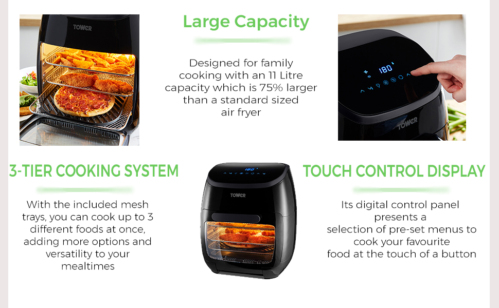 Tower Xpress Pro Combo T17076 Vortx 10-in-1 Digital Air Fryer Oven with Rapid Air Circulation, 60-Minute Timer, 11 L, 2000 W, Black
