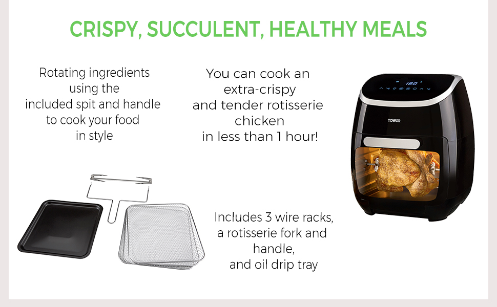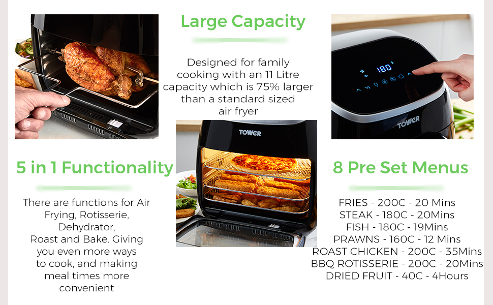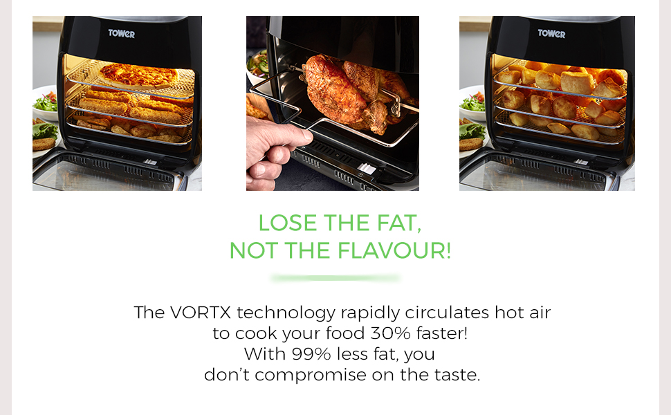 Tower Xpress Pro T17039 Vortx 5-in-1 Digital Air Fryer Oven with Rapid Air Circulation, 60-Minute Timer, 11 L, 2000 W, Black