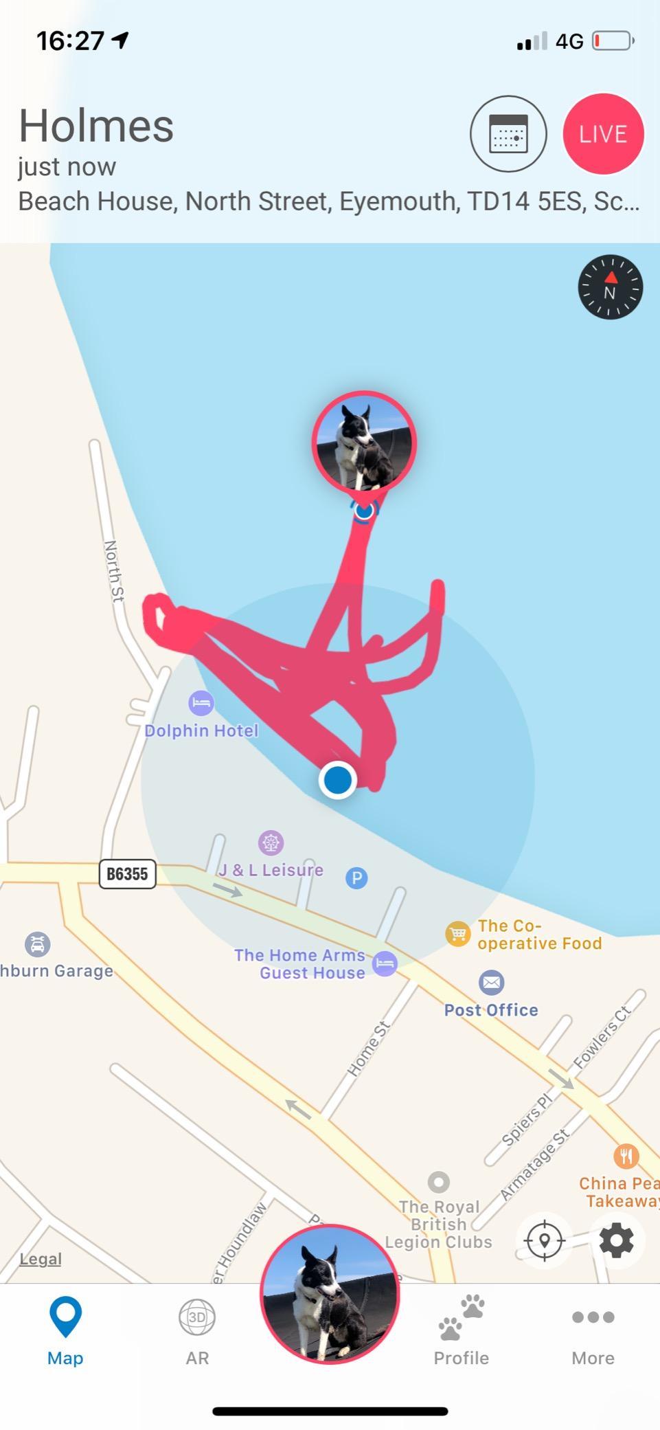 I don’t like the fact that live tracking is on a timer with a maximum of 60 mins. My previous tracker stayed on live tracking until you turned it off or the battery failed. So, as live tracking drains the phone battery too, have to keep on default tracking and if the dog runs off have to quickly turn live tracking on – but it doesn’t seem to turn on if the dog is too far away. Also – if you haven’t got the dog back to you withing whatever timer the live tracking is set for – you’re not able to track the dog. Not helpful.