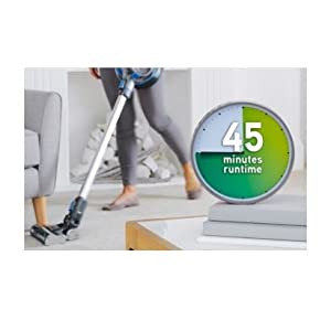 Powerful multi-surface cleaningOur specially designed floorhead has been intended for optimal pick-up performance on every floortype. | Boost modeExtra suction power is available at the touch of a button so you can pick up and clean stubborn dirt and pet hair. Great in high traffic areas. | 45 Minute RuntimeThe lithium-ion battery delivers a 45-minute runtime, giving you enough suction power and time to clean your whole home without recharging. |