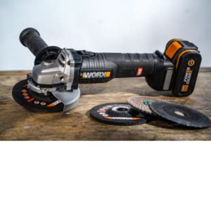 Features a 2-position auxiliary handle for added comfort. The grip is rubberized and soft for a comfortable grip. It has axle lock button to easily change the disc. Powershare Platform Removable and interchangeable battery with all power and garden tools in the WORX 20V range. Battery and charger not included.