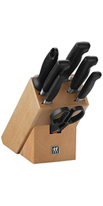 Zwilling Knife Block, 8 pcs., Wooden Block, Knife and Scissors made of Special Stainless Steel/Plastic Handle, Four Stars