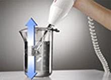 SpeedAs a general rule, work on speed setting number 2 especially when working with hard kinds of food and large volume of liquids/ingredients. Work using speed setting number 1 if the liquid does not entirely cover the safety guard (with the 4 prongs) and also for all food that has to be light and fluffy. | Drawing UpRest bamix for a few seconds on the bottom of the jug. Then hold it at an angle and draw it up slowly against the side of the jug. When the ingredients are no longer drawn with bamix put it back on the bottom and repeat the process until the ingredients are whipped to the required stiffness. | Wrist MovementWhile processing, use a light rotating motion from the wrist, draw bamix up a little and let it fall on the ingredients (do not press or pound). The fineness of the result depends on the duration of the processing. | BlendingDip bamix at an angle in the ingredients, switch it on and stir very slowly. Before taking the bamix out switch off the appliance to avoid splashes. |