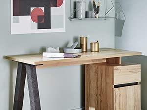 This is an easily assembled clothing rail, that has the benefit of top and bottoms shelves. The frame is white, and the shelves are off an oak design and look quite modern.