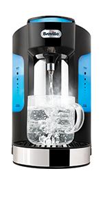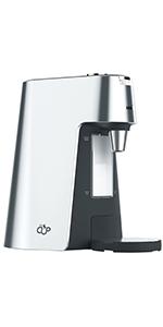 Simply Customise Your CupSelect from 9 different cup sizes, push the button and in under a minute you enjoy the right amount of water for ultra-fast tea, instant coffee, hot chocolate and more. There’s also a stop button so you easily stop mid cycle. | Easy Fill Water TankThe big, easy open water tank makes it fast to fill while the 2.0L capacity delivers up to 10 hot drinks so it can handle heavy use. It’s as easy as a kettle but faster and with less waste. | Height Adjustable Drip TrayFrom tiny cups to big brews, the adjustable drip tray can be reversed with an easy to use magnet, making it easy to enjoy hot drinks of all shapes and sizes. You can even remove the drip tray entirely for larger jobs. | Stylish and Easy to CleanSleek lines, a high-shine silver finish with black details and a water window that glows white when boiling make it the perfect addition to every kitchen or office. The permanent, fuss-free limescale filter ensures it’s easy to clean and maintain. |