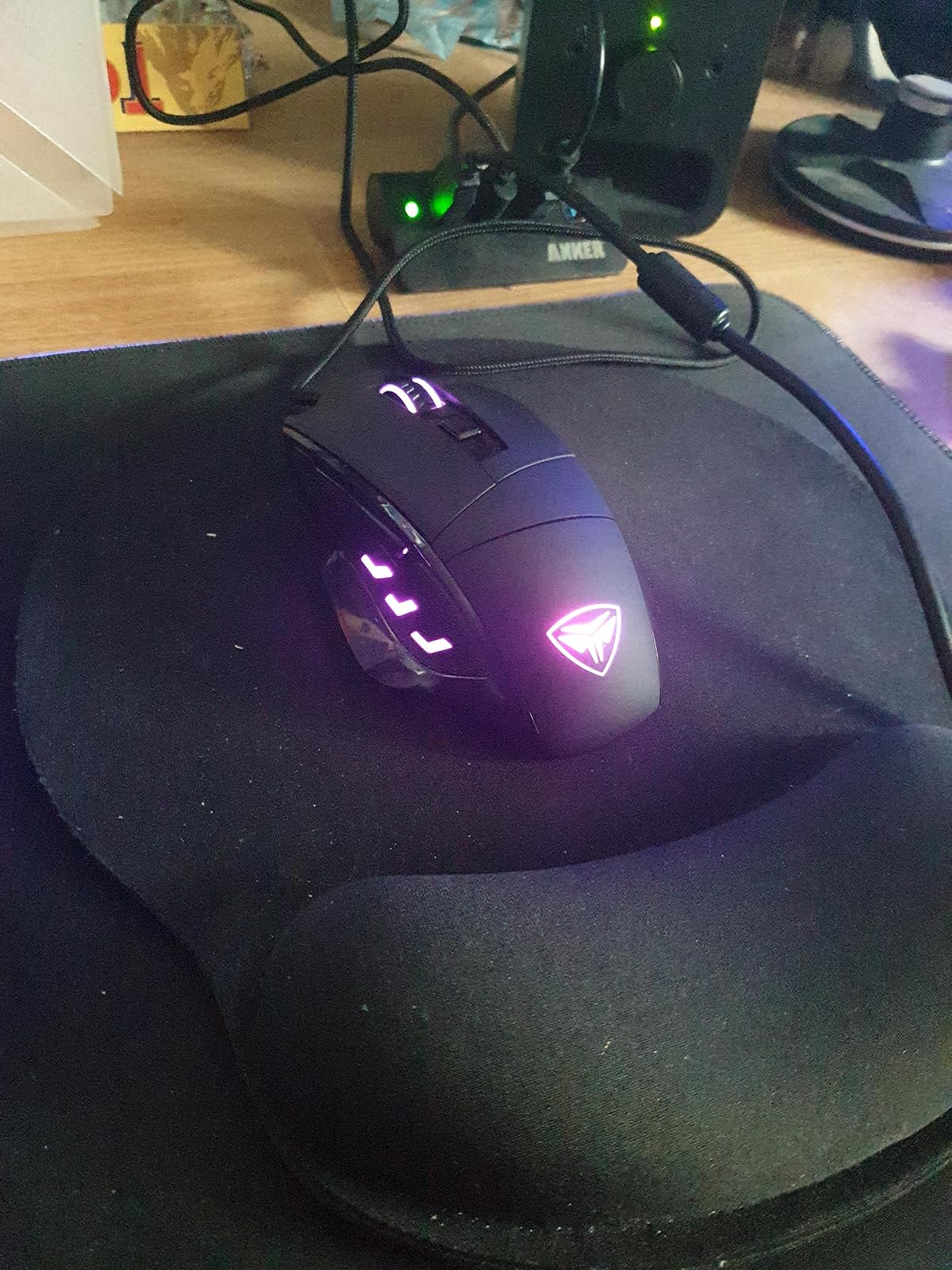 Using the mouse personally isn’t that comfortable, it feels heavy, doesn’t move as easily as my own and feels a bit wrong for my gorilla hands. But my daughter loves it, especially the purple illumination. It is very well made and looks very sturdy, so should withstand a few temper tantrums and throws. Which is the usual need for a replacement!