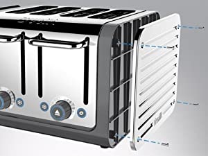 This is a great toaster it toasts evenly and quickly. It is solid, robust and stylish. Handy to be able to lift the bars to have a peek at the toast without canceling the process. It does not fit Warburtons bread in unfortunately, for this I have to start toasting it and wait till the bread shrinks a bit, then put it sideways in. Still, it’s definitely the best toaster I’ve had in many years!
