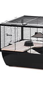 Only 1 downside to the cage is the ramp has no grip and my hampster kept sliding down when trying to climb up it so I had to stick sandpaper on it for grip. Other than that the cage is very nice, I would recommend this cage.