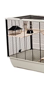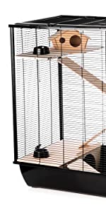 Our hamster was in a much smaller cage, where she was continuously trying to gnaw her way through the bars. We’ve put her in one of these and she appears to be so much happier; she scampers about, up and down the different levels, plays with her activity toys, which are dotted around the interior and there is very little gnawing of the bars. A great cage; a happy hamster.