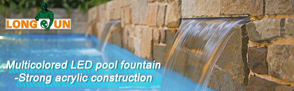 LONGRUN Water Fountain, Pond Waterfall Cascade 90cm, Acrylic Waterfall Spillway Blade with 7 Colors LED Light, Complete Waterfall Pool Fountain & Stream Kits for Outdoor Garden Pool Water Features
