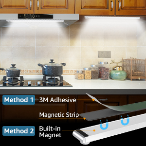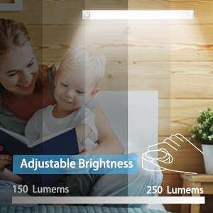 | Dimmable LED Light Stylish design with adjustable brightness button, which can turn the button to adjust the brightness of the light from 150LM to 250LM. The default brightness is 150LM, you can adjust the brightness easily according to your different needs. Rotate the button to the right is “+”,which can turn the light brighter. Rotate the button to the left is “-“,which can turn the light darker. | Easy to Install by 2 Ways 1. 3M Adhesive Magnetic Strip 2. Adsorbed on any ironwork surface Built-in strong magnetic, itcan be adsorbed on any ironwork, or stick anywhere you like with the super strong 3M adhesive magnetic strip. Easy to install and remove without any tools. | 3200mAh Large Battery Built-in large 3200mAh rechargeable Battery, it can last about 6 hrs at Always-On Mode after full charge. (During at 150 Lumen) Easy to charge by any USB port, like plug, power bank or laptop.