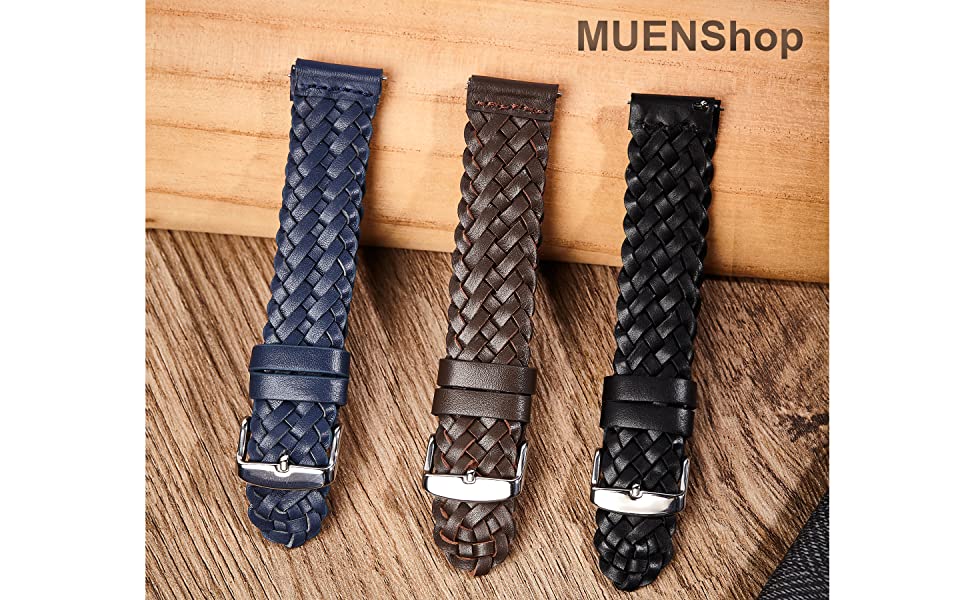 MUENShop Leather Strap Hand Woven Band 20mm 22mm Quick Release Soft Breathable Classic Design Black/Brown/Blue Check Offer Price Dimensions: 15 x 4 x 1.5 cm; 40 Grams