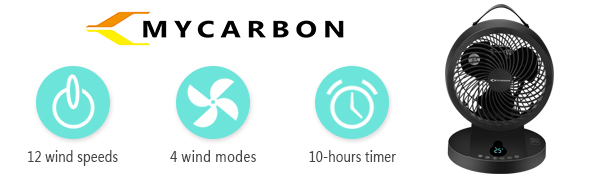 MYCARBON Fan Quiet Desk Fan Automatically Oscillating Whole Room Fan 12 Speeds Turbofan 25dB Silent Table fan 10H Timer Air Circulator Fan For Bedroom Office Living Room, Energy Saving [Energy Class A+++]