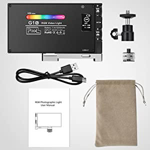 Newest Pixel G1s RGB Video Light, Built-in 12W Rechargeable Battery LED Camera Light 360° Full Color 12 Common Light Effects, CRIâ¥97 2500-8500K LED Video Light Panel with Aluminum Alloy Body