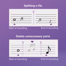 Tripod adapter lets you attach a tripodTo keep the recorder small, a small diameter tripod socket is included on the body. To use a tripod with the recorder, simply attach the included tripod adapter to this socket. | Voice Balancer delivers audio that is easier to hearWhen voices are at different volume levels due to the distance and physical relationship to the recorder, the Voice Balancer automatically makes smaller voices louder, and ensures that louder voices stay below a given level, providing playback where everyone is audible. This comes in handy when recording sound sources from many positions, such as in a large meeting or conference. The voice filter function operates simultaneously, and reduces the prominent noise produced when amplifying small sounds. By eliminating the lower and higher frequencies during playback, recorded voice is further enhanced. This enables much clearer playback. | Various file editing functionsFile Divide function : When you have continuously recorded several songs in one file such as in a concert, you can split the file per each song later. Partial Erase function : When you have continuously recorded several songs, you can select and cut out the unwanted space in between songs. | Noise Cancellation – for clear playback qualityThe noise cancellation function powerfully reduces unwanted ambient noise such as air-conditioner noise or projector fan noise to enable clear playback quality. This function is effective when playing back meeting recordings. |