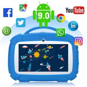 GMS certified Google Kids tabletThe GMS (Google Mobile Service) certified tablet guarantees effectiveness, reliability and data protection for safe surfing and safe communication. The Android 9.0 tablet enables multiple applications to be loaded easily and promises a particularly smooth gaming and video experience | Parental control functionThe parental control feature allows children to access educational apps and browse age-appropriate websites. | HD display with eye protectionThe 7 inch IPS 1024 * 600 display gives your children a better visual experience while watching videos, reading books or playing educational games |