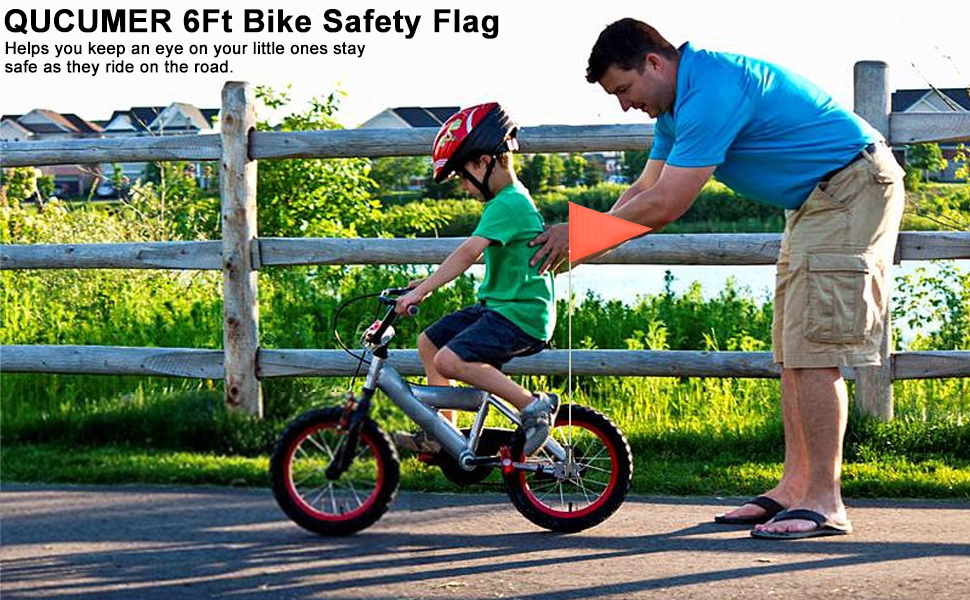 QUCUMER 2 Sets Bicycle Safety Flag with Pole, Safety Flag Kid Bike Trailer Cycles Bike Safety Flag High-Visibility 6 Foot Fiberglass Pole Flags Adjustable Height Bicycle Flag for Cycling, Traile