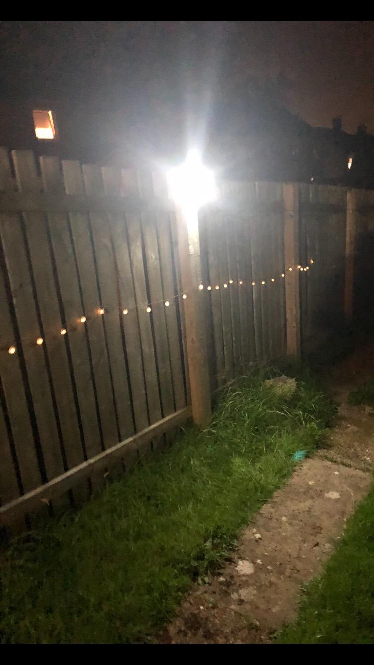 Fitted in the fence so when someone comes close to the fence it’s lights up