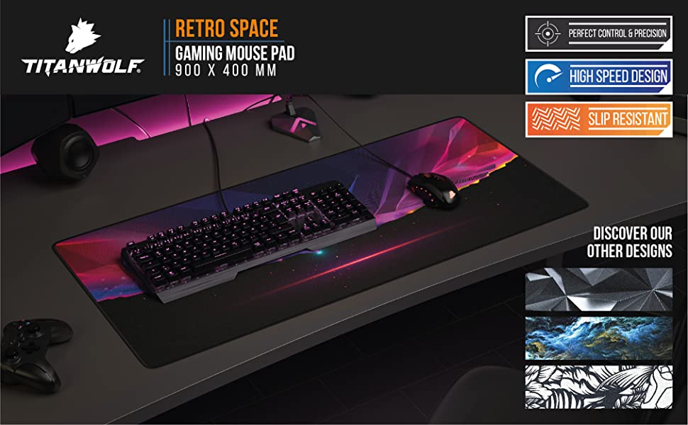 TITANWOLF – XXL Mouse Mat – Mouse Pad 900 x 400 x 3mm âSpeed Gaming Mouse Pad – Extra Large – Table Mat Large Size – improved Precision and Speed â Design Retro Space