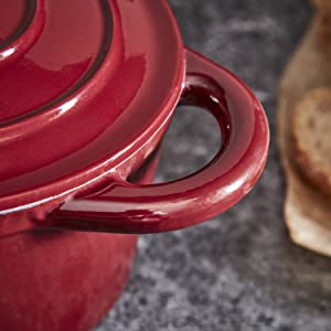 This is a hefty dish and feels very solid and well made. It looks the part and has a lovely deep red colour. Just be careful if using this on a glass hob, as its weight has the potential to crack the glass. There’s definitely room to take a medium chicken in here, so could be used for a small one pot roast for two.