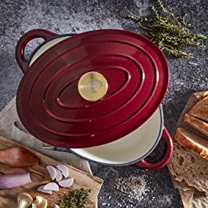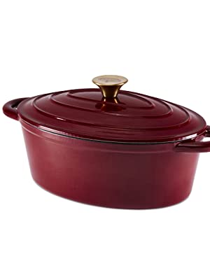 Tower BO800252RED Barbary & Oak Oval Cast Iron Casserole Pan with Durable Enamel Interior, 29cm, Bordeaux Red