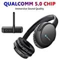 50M Long Transmission RangeNew Bluetooth technology with Qualcomm new chips transmits further wireless range, up to 50m in the absence of physical obstacles and wireless interference. Get clear sound even in other rooms! | 2 Qualcomm Chips for Fast ConnectionThe new Qualcomm CSR8670 chipset ensures fast auto-connect. Press and hold the power button of the headset for 3 seconds to power on the transmitter. They will pair automatically. If it fails to pair, double-tap the transmitter button and restart the headphones . | Soft Protein EarmuffsThe skin of the earmuffs is very hard to fall off with protein material, also giving you a long time comfort. | Volume Memory & Will not Auto Shut DownWhen turn off the headset and turn it on again, the volume will not be forgotten. Some brands of TV headsets will aut shut down in 3-5 minutes when no sound or soft sound. But our makemate BKM200 still can accept signals and does not autom shut down unless battery low. |