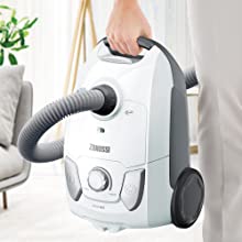 This minimalist white Zanussi vacuum is effortlessly stylish yet with the wheel turned to max, can suck and roar like a much bigger vacuum. I have even taken to not putting it away I like the look of it so much!