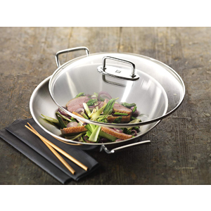 ZWILLING 40992-332-0 Wok, Incl. Glass Lid and Removable Grid Insert, Suitable for Induction, Ø 32 cm, Stainless Steel, Plus, Silve