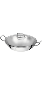 The rounded glass lid gives you a good view of your dish even during cooking and it fits snugly on the wok, preventing steam from escaping and enabling energy-saving cooking. The practical metal handle allows easy opening and closing without burning your fingers.