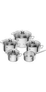 5-piece cooking pot set incl. saucepan, With 4 matching stainless steel lids