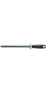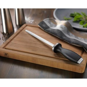 Even a good knife should always be cared for to ensure its sharpness. Therefore only use flexible cutting boards such as bamboo and plastic. A sharpening rod sharpens dull blades. To do this, pull the blade along the sharpening steel at a 15° angle in a slight arc and repeat the process on each side depending on the desired sharpness.