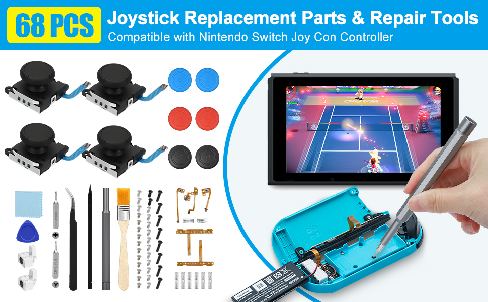 68 Pcs Joycon Repair Kit for Nintendo Switch, Switch Joystick Replacement 3D Analogue Thumb Stick, with Joycon Replacement Parts, PH000 Y1.5 Screwdriver, L ZL ZR SL SR Button Flex Cable, Pry Tools