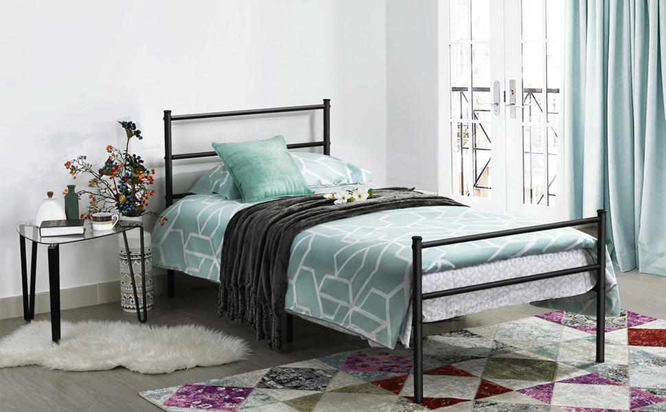 The single bed frame with a headboard and footboard, prevents the mattress from sliding