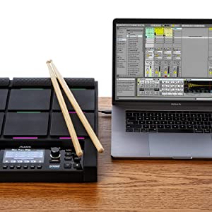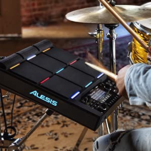 PerformPerform better, faster, with more creativity and with more content, versatility and capability than any other drum pad anywhere. With nine velocity-sensitive pads, outfitted with customisable RGB lighting that display velocity, loop length and more, you can be certain you never miss a beat â no matter how dark or foggy the stage is. | The Ins and OutsThe Strike MultiPad effortlessly integrates into your existing setup thanks to its arsenal of inputs and outputs. With four audio outputs, two inputs, two headphone outputs, MIDI-In / -Out and three additional trigger inputs, whatever your performance demands the Alesis Strike MultiPad has your performance covered. | Production PowerhouseStrike MultiPad seamlessly transitions from a stage essential to a studio-centric goliath thanks to an on-board 2-in/2-out audio interface and premium software suite including MPC Beats and Ableton Live Lite for immediate out-of-the-box potential. |