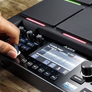 SampleSample anything you wantâany sound, any effect, from anywhere. Use your mic, your phone, your computer, USB input or another audio device to capture live or pre-recorded samples, even off the internet. | EditEdit your samples and loops with the radiant 4.3-inch colour screen, easy-to-use selectors & encoders, A-Link controls and the five built-in effects processors – tweak, shade, colour, EQ and compress to your heartâs content. Your sounds will really be your sounds, and no one elseâs. | On-Board LooperLoop-based recording of your pad performance is a snap, either from the samples you created, or from an external input. Either way, with Strike MultiPad looping can be seamlessly integrated into your playing. |