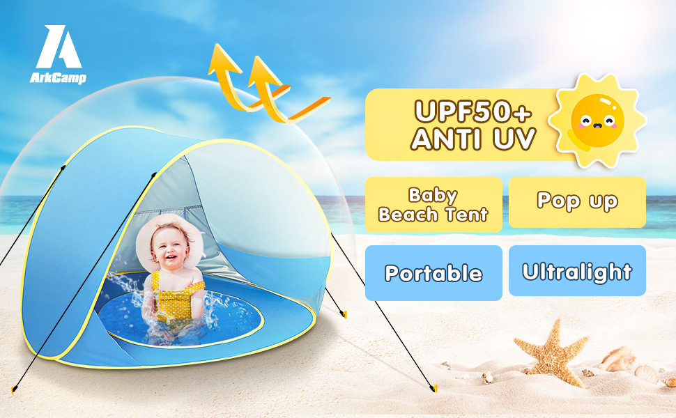 ArkCamp Pop up Baby Beach Tent with Baby Pool, Automatic Portable Lightweight UV Protection Sun Shade Shelter Canopy Tent for Family Outdoor Camping Fishing Picnic Hiking