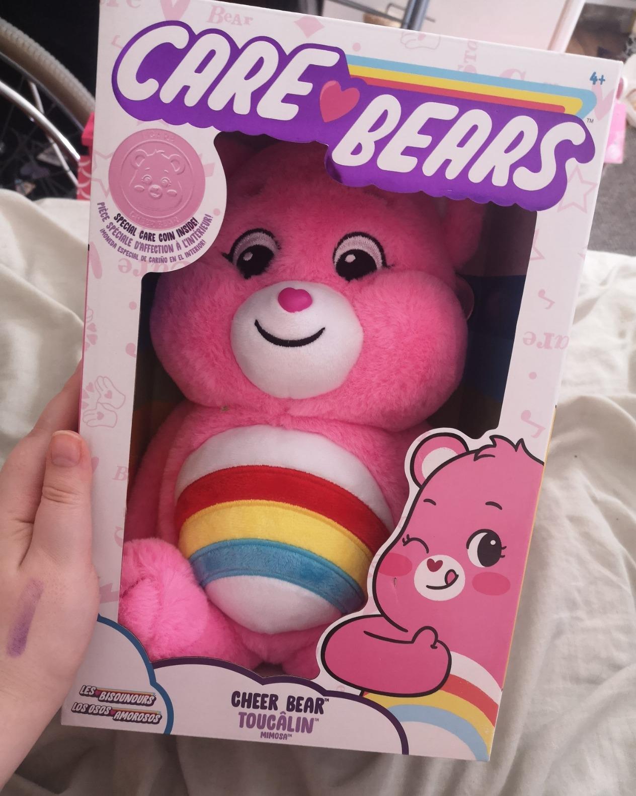 I purchased this care bear for my daughter as I grew up with Care Bears. We watched the old series together and she loved it so got her this bear – great value for money (9.99! At the time) soft cuddly and she loves it just like I did when I was young. Good size and very well made