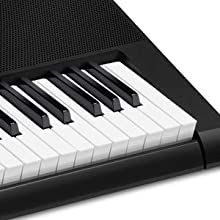 This replaced a previous Casio keyboard, only difference from the previous one is that these keys don’t light up! The lights certainly do help in the early stages, as on this keyboard although it ‘talks’ shows the key required to press on the small display. I find it hard to read music (and I do try) so working out the key to press is a little elongated for me, however manage to get by and really love this keyboard. There are more in-built tunes, which is great, more variety to accompany.