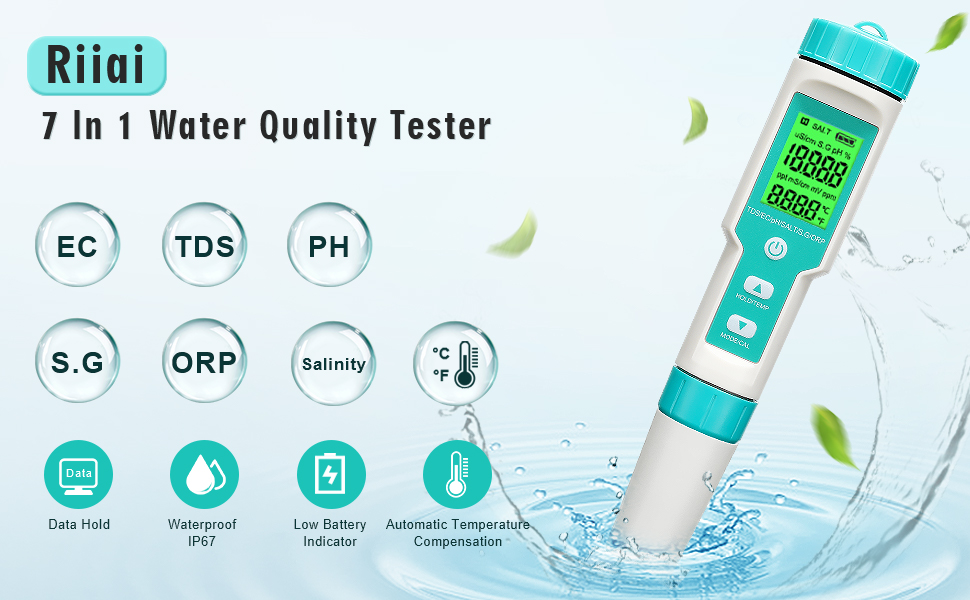 Digital PH Meter,7 in 1 PH/TDS/EC/ORP/S.G/Salinity/Temp Meter with ATC,0.01 Resolution High Accuracy Pen Type Tester,Backlight Water Quality Tester for Drinking Water Swimming Pool and Aquarium Feature pH/TDS/EC/ORP/S.G/Salinity/Temp pH/TDS/EC/ORP/Temp LCD Backlight â â ATC â â Waterproof â â Auto shut off 5 Minutes 5 Minutes Check Offer Price Weight: 160 g Dimensions: 18.3 x 3.7 x 3.7 cm; 160 Grams Brand: Riiai Model: TJHUK52-JF0314G Colour: As Shown Colour: As Shown