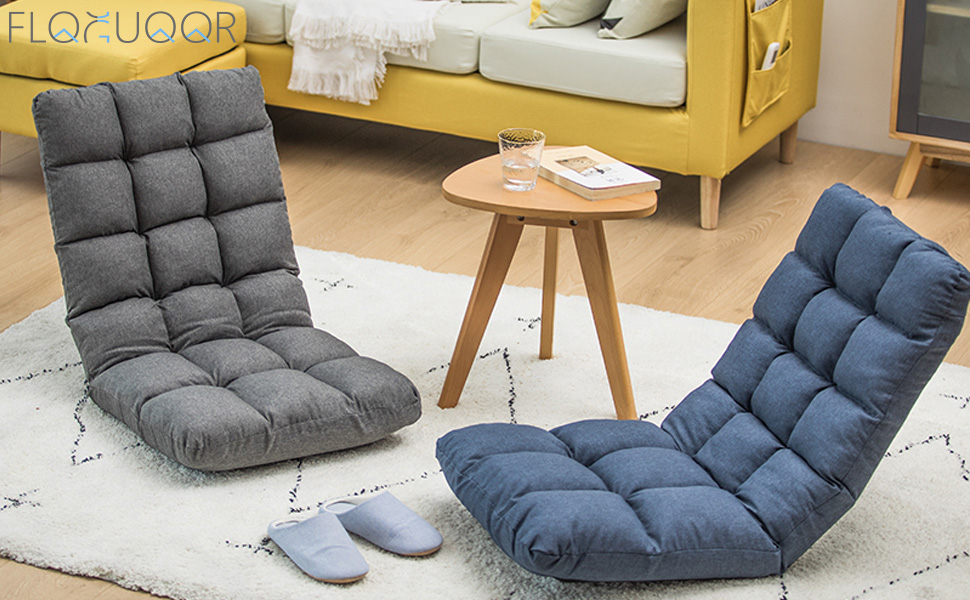 FLOGUOOR Reading Chair, Floor Chair with Back Support, Adjustable 14 Angles Padded Single Sofa Bed Chair for Gaming, Relaxing, Especially Suitable for private space (Grey) 8812